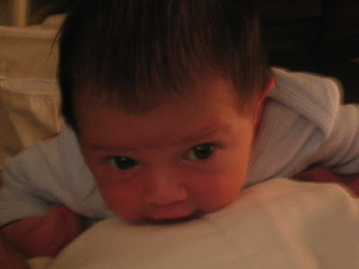 Jayden has just never had a bad hair day! He also had tons of hair at birth. My two girls were almost bald and then my son had hair but not as much as Jayden. He is just too cute and he has that twinkle in his eye...can you see that mischievious and adorable twinkle too??